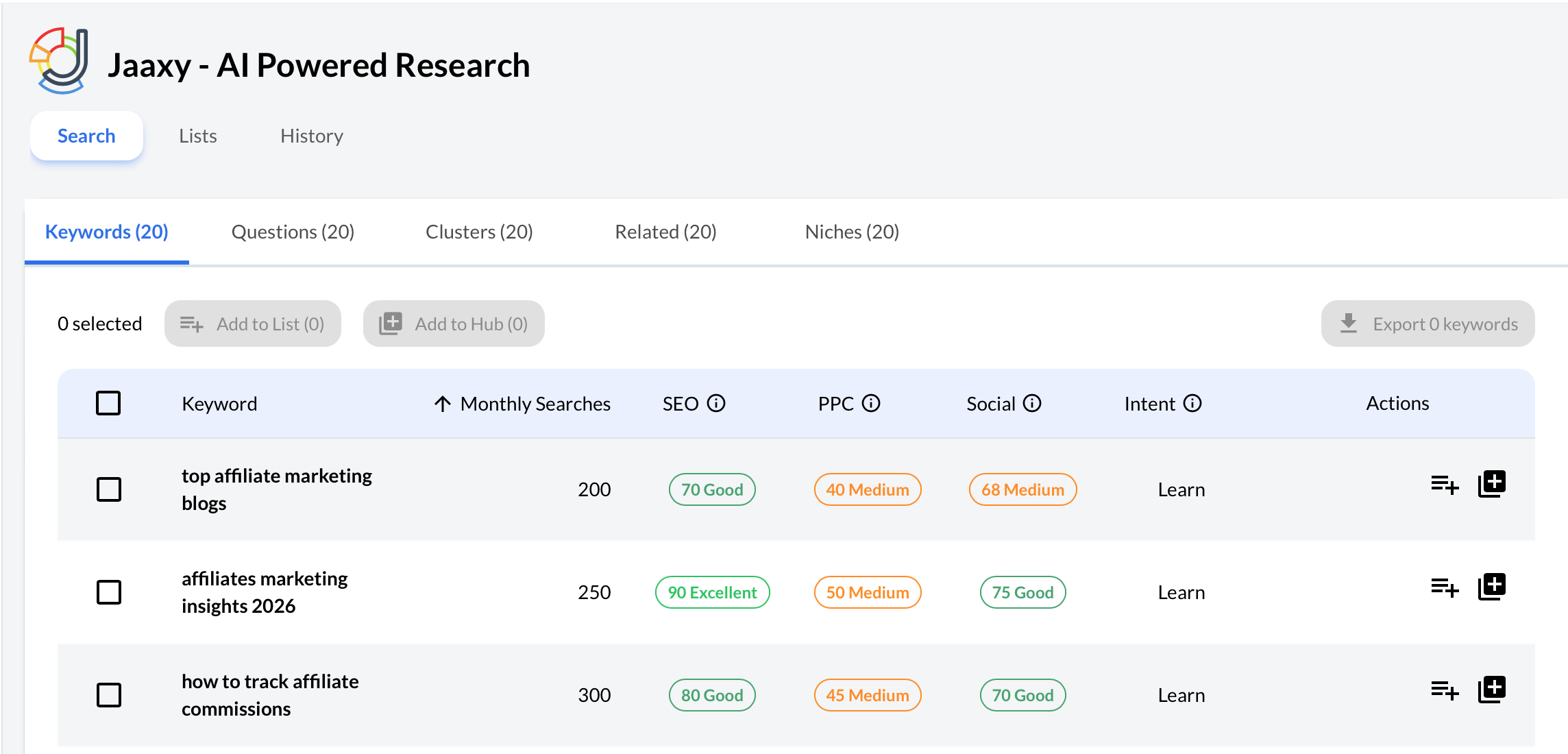 | Research | Expensive 3rd party tools ($99+) | Integrated Jaaxy Research Suite |